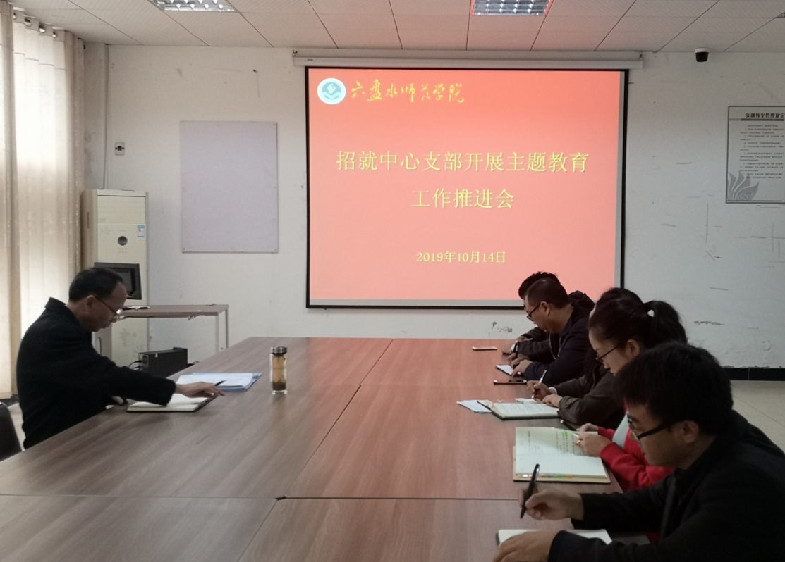 10月14日上午,支部“不忘初心、牢记使命”主题教育工作推进会在智学楼二楼实训教室召开,会议由招就中心主任、支部书记左金洪主持,支部全体党员参加了会议。
